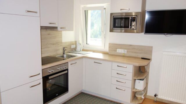 Die Ferienwohnung hat eine Wohnküche ausgestattet mit Geschirrspüler, 4 Platten Cerankochfeld, Backofen, Mikrowelle, Kühlschrank komplett mit Geschirr und Besteck, 2 Schlafzimmer jedes Zimmer mit Dusche/ WC,